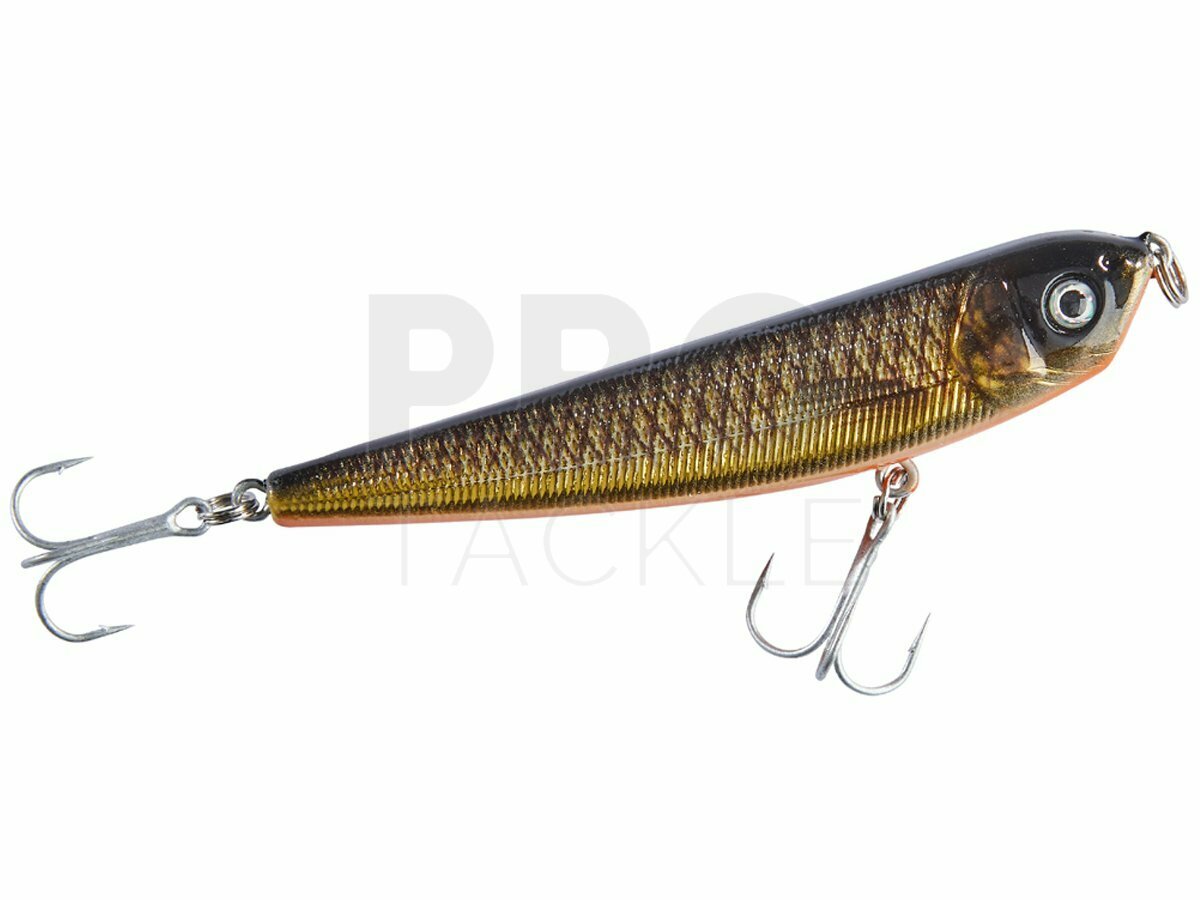 When predators attack the surface in spring or summer, this topwater hardbait is the perfect choice. It lies in the surface film and breaks out sideways when reeled in, imitating an injured fish – and therefore easy prey. Type: floating, Diving depth: 0m.