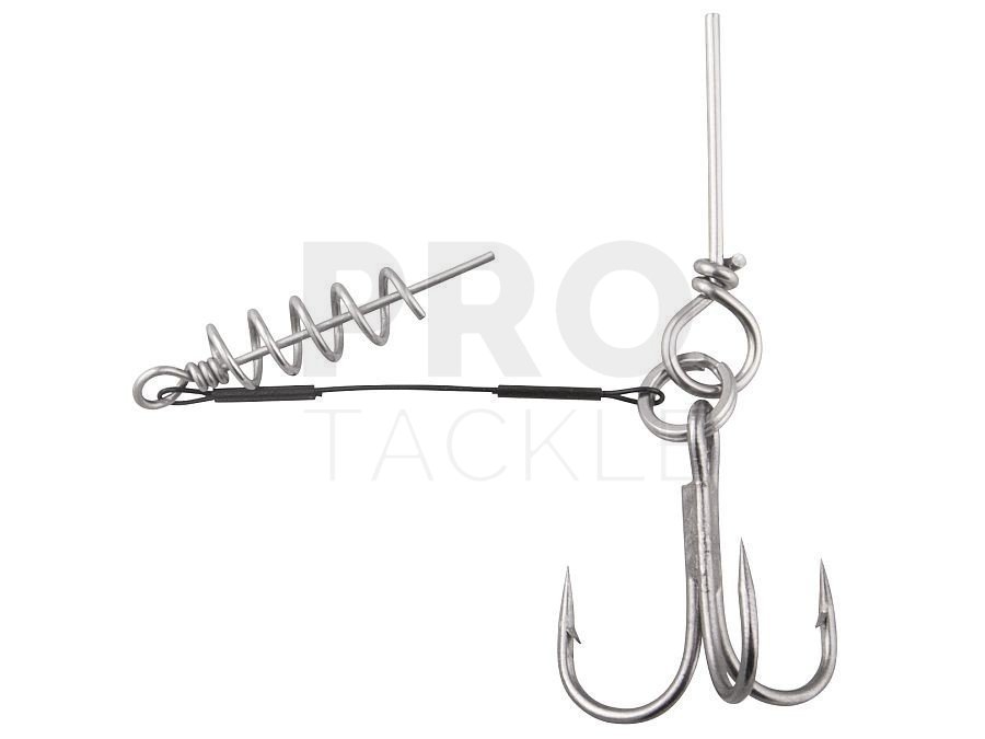 Leaders with corkscrew which facilitates precise installing to the soft lure. Four lengths, for soft lures in sizes from 15 to 25 cm, and four sizes of DRAGON V-POINT treble hooks, which ensure effective hook set.