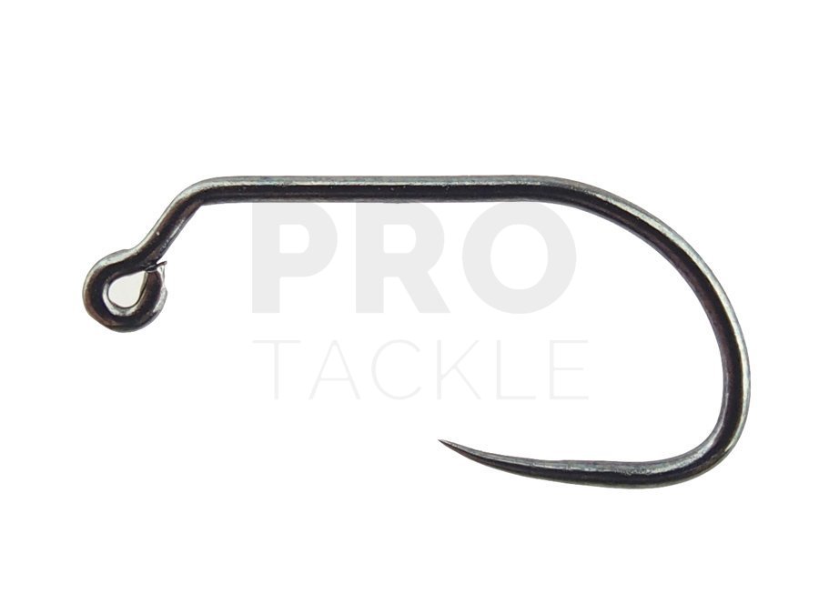 New type of jig nymph forged hook available in a wide range of sizes: 10 to 18. 430s has updated shape of the point and the gape. Great hook for any nymphs, as well as in larger sizes. i.e. for imitations of small leeches. Best used in a set of tungsten slotted beads. Forged. Finish: black nickel.