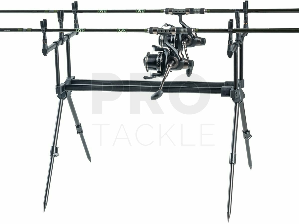 Prepared for three rods. Weight 1.7 kg, dimensions: 74/74 x 29/45 x 43.5 x 20.5 cm.