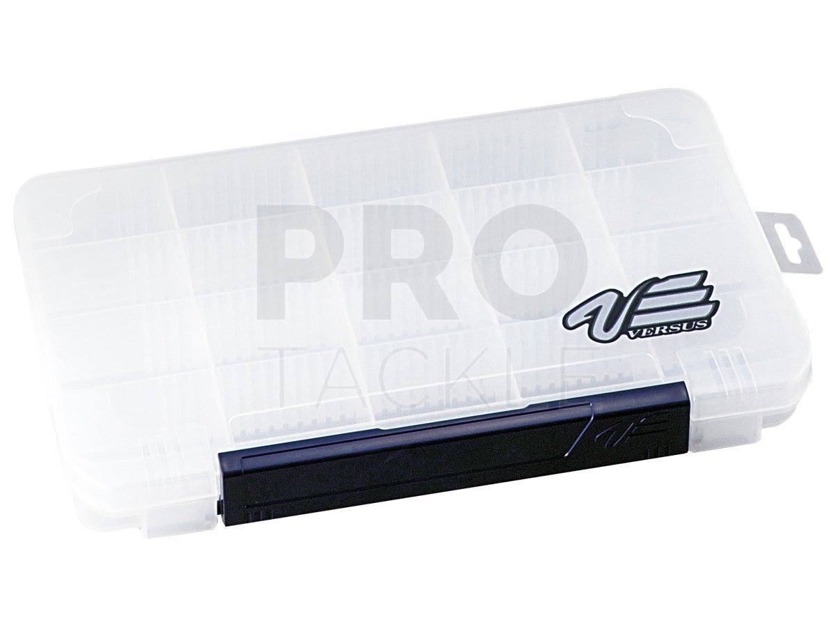 The Versus VS-3043ND is an awesome, high quality compartment case that is a must have addition to any tackle box. The plastic fishing tackle case comes with 14 removable plastic dividers and 3 fixed long dividers. These dividers split the container into multiple compartments for various sized fishing tackle. With this, the VS-3043ND also has an attached hinged lid with a strong latch closure that keeps the lid closed during transport.