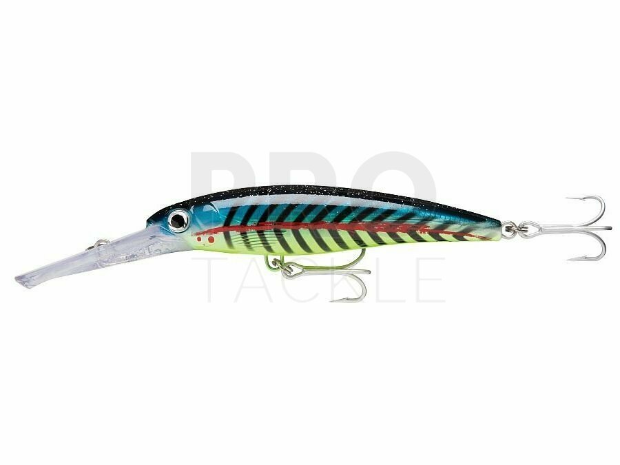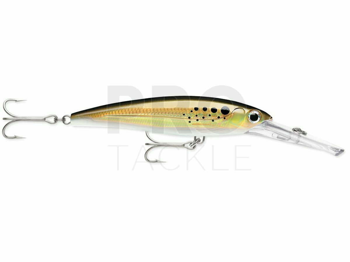 Rapala X-Rap Magnums run perfect right out of the box, no wasted time tuning. The massive diving-lip takes the X-Rap® Magnums deep… unassisted. Nothing to hinder the action. Each dives to its preset depth…the XRMag10 to 10 feet, the XRM15 to 15 feet, etc. Run up to 13 knots for big game fish worldwide. Big water patterns compliment the X-Rap construction standards – textured translucent body, internal holographic foil, 3D holographic eyes. Built saltwater tough with 3X split rings holding 4X VMC® Perma Steel hooks. Some models feature colored lip for added attraction. • Deep-Diving Lip • Models with Colored Lip for Extra Attraction • Textured Translucent Body • Internal Holographic Foil • 3D Holographic Eye • VMC® 4X Perma Steel® Hooks • 3X Split Rings • Big Water Patterns SPECIES: Tuna, Dolphin, Grouper, Wahoo & Musky TECHNIQUE: Trolling RUNNING DEPTH: 15` - 25` (4.5m - 7,5m) The running depth by size: - XRMAG05 (10cm) - 5ft / 1.5m - XRMAG10 (11cm) - 10ft / 3m - XRMAG15 (12cm) - 15ft / 4.5m - XRMAG20 (14cm) - 20ft / 6m - XRMAG30 (16cm) - 30ft / 9m...