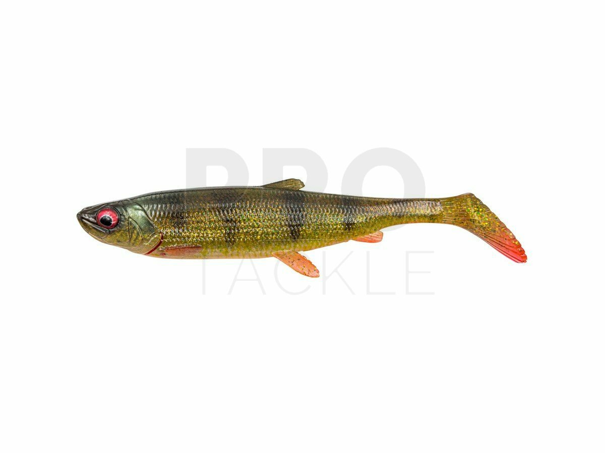 Based on the scan of a real Baltic herring but also imitates many other freshwater Prey fish, like whitefish, roach etc. The loose body paddle tail lure feature immaculate details and a fantastic rolling and kicking action. The Broad flat sides flanks and flashes as the lure rolls and kicks thru the water. The articulated, super realistic fins, adds great secondary action to the kicking paddle tail that holds a noisy glass rattle. Super soft PVC material, with stunning colors and strike triggering scent. Belly slot design to snug in stinger rig for a perfect presentation.