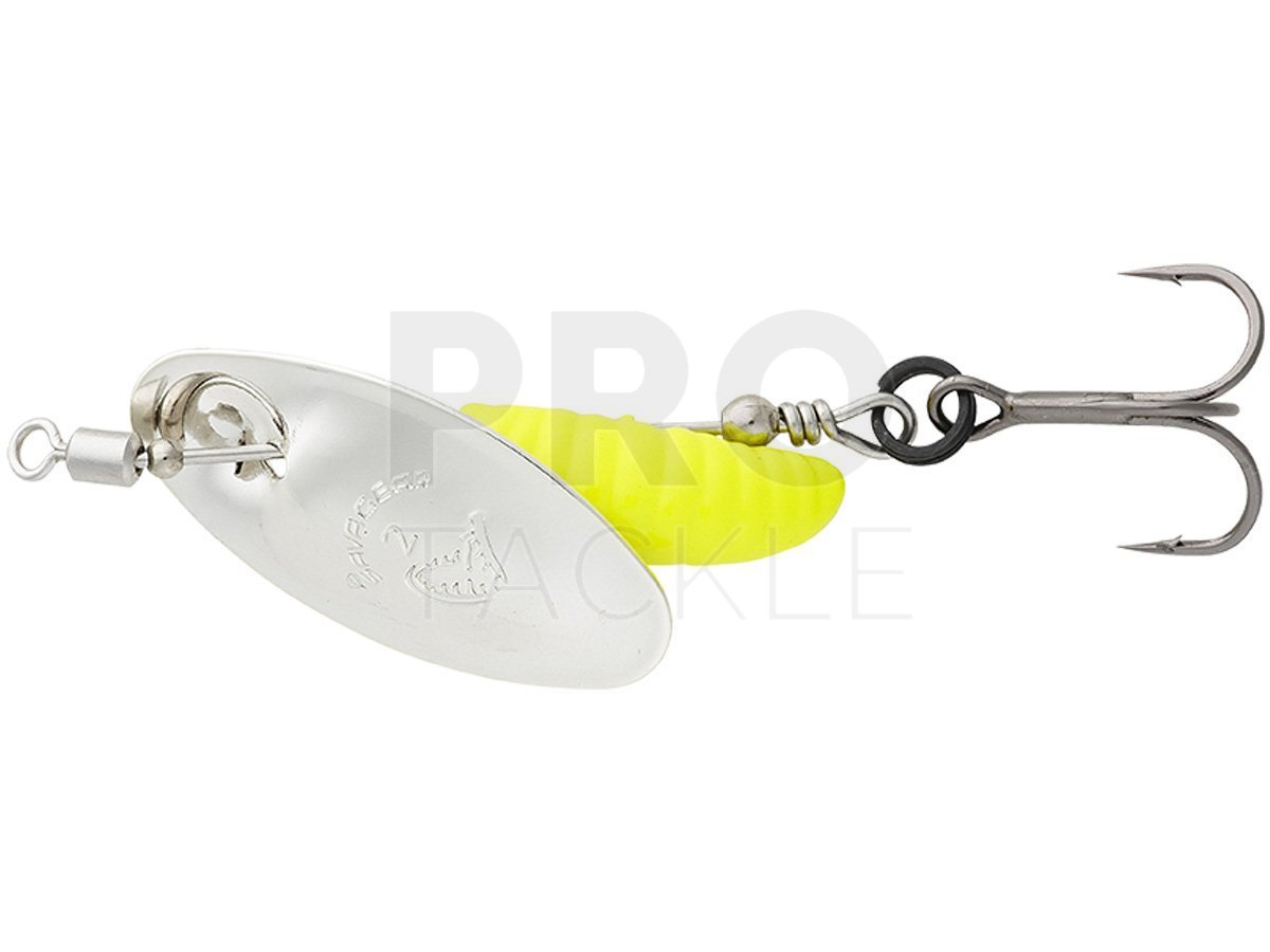 The maggot-shaped body combined with the unique action means this spinner is sure to tempt predators to attack. The rotating, flashing wing, which attracts the attention of fish, combines with a subtle and attractive looking body. The built-in swivel helps to avoid line twisting, and the number of successful hooks is increased by the presence of very sharp trebles and equally sharp single hooks.