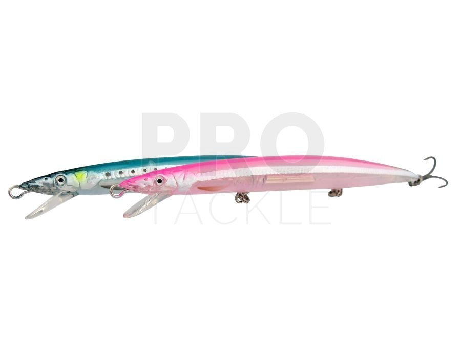 Based on a 3D Scan of a Sandeel, that is also very close to a baby needlefish. The very slim shape combined with the super natural swimming action, makes this lure very effective. The lure is silent and has an inside magnetic long cast system, that give makes the lure fly far. This floating version is ideal to use in a wide range of fishing spots like rocks, ports or even shallow beaches. The Jerk minnow is extremely easy lure to use, with the most amazing jerk and twitch action, with an almost horizontal balance on the stop and have a great roll and flash on retrieve! Fishing method: This lure will perform excellent with slow, medium and high-speed retrieve and will perform most amazing jerk and twitch action. 3D Scanned details Magnetic Silent Long Cast System Great jerk and twitch action Horizontal balance 3 Ultra-sharp strong Saltwater ST46 trebles. 145mm #6. 175mm #4