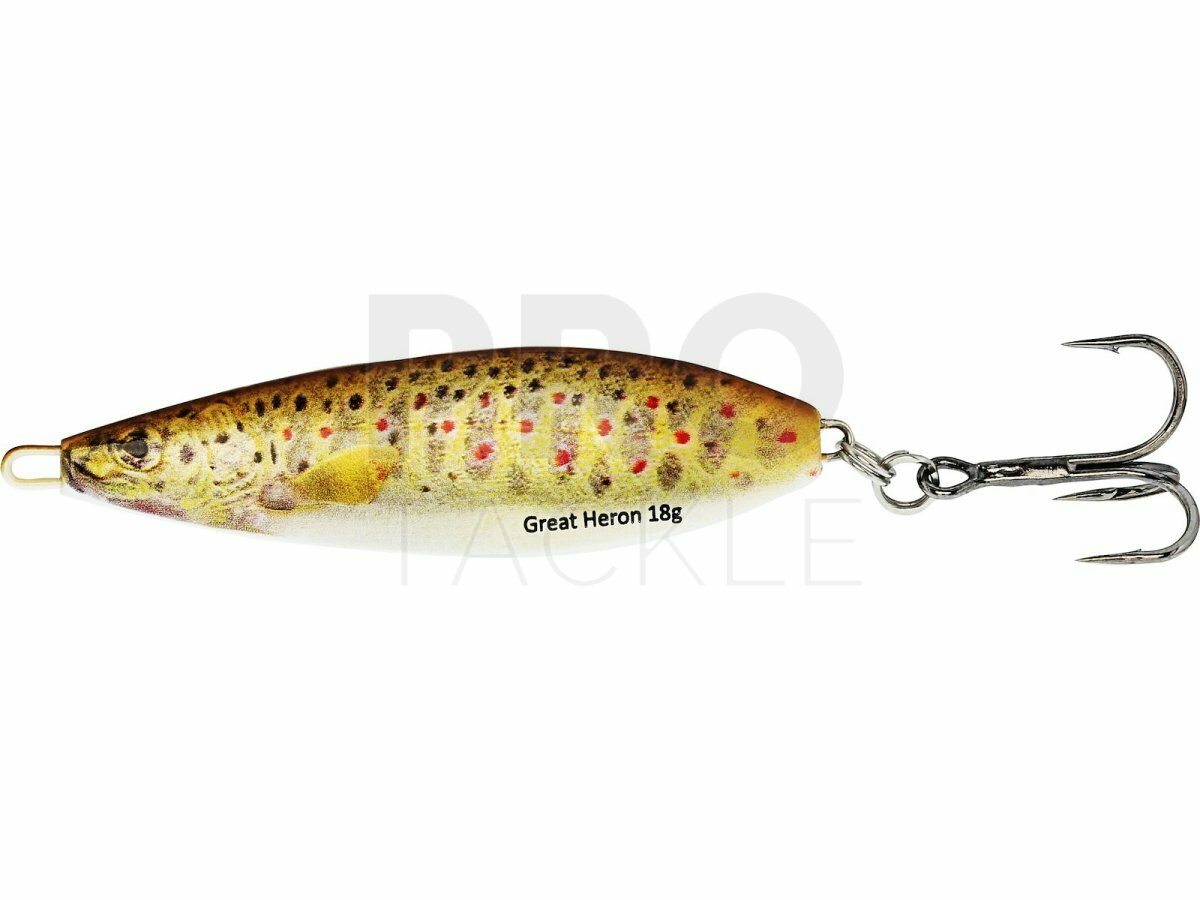 Great Heron is a lure designed according to Finnish lure traditions. It was created and tested in cooperation with experienced anglers from Finland and Sweden. Right from the very beginning it has proved to be a highly efficient lure - not only for trout and salmon, but also for species like asp, perch and pike. Great Heron can be retrieved fast or slow. Regardless of the speed it has a very vivid action that will trigger the bite. No wonder this lure has become one of the most popular lures in Scandinavia!