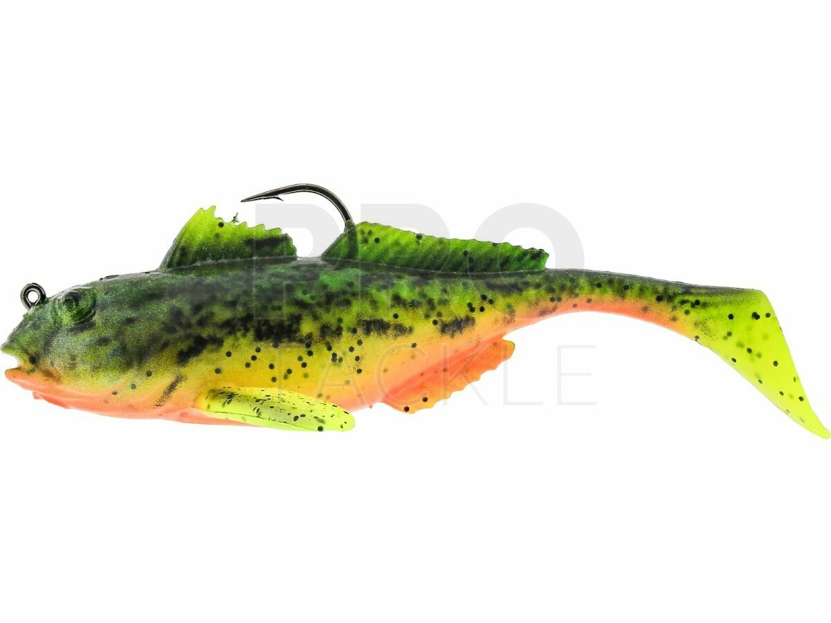 We proudly present the newest member of the legendary Westin swimbait family – Gunnar The Goby! This Hyper Realistic design mimics gobies, the most common prey of zander and perch in European rivers and lakes. Gunnar can be combined with all the modern bottom fishing techniques for zander and perch. The rigged version (R2F) is ready to fish and ideal for slowl jigging with fast starts along the bottom. The point of the super-sharp hook, embedded in a lead-free stand-up harness, is also covered by the dorsal fin to work as a weed guard. Gunnar imitates the typical swimming action of a real goby, slipping easily between stones, and always lands on the super-flexible pectoral fins, just like a real fish, in a ‘hook up’ position, in the perfect position to be engulfed by a hungry predator.