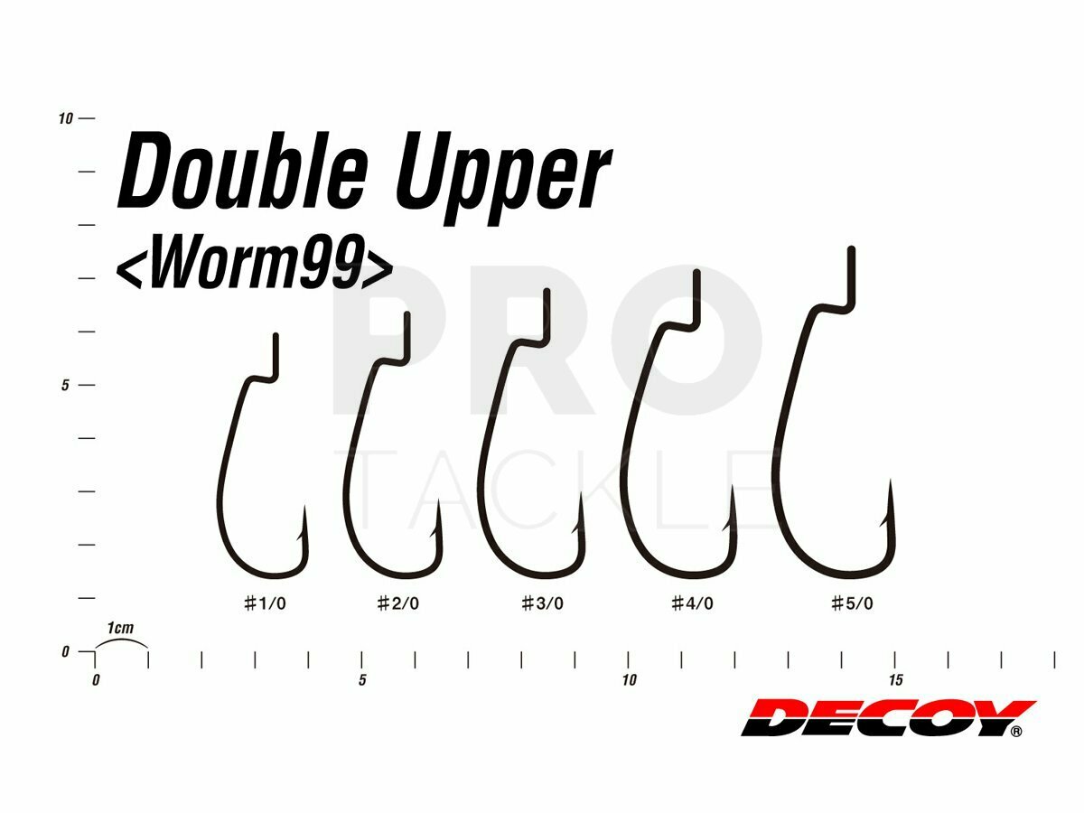 The Decoy Worm99 (Double Upper) is a strong, offset fishing hook designed for superior hooking performance, especially in swimming or shallow bite situations. Built with 2x strong wire for extra power and durability, this hook features a long neck and staggered parallel hook points that improve hook-up on light strikes. Its design keeps soft baits secure and reduces slippage, making Worm99 ideal for swimbaits, soft jerkbaits and other swimming presentations. The robust construction also makes it suitable for tougher freshwater species like bass and hard-fighting fish in saltwater environments.