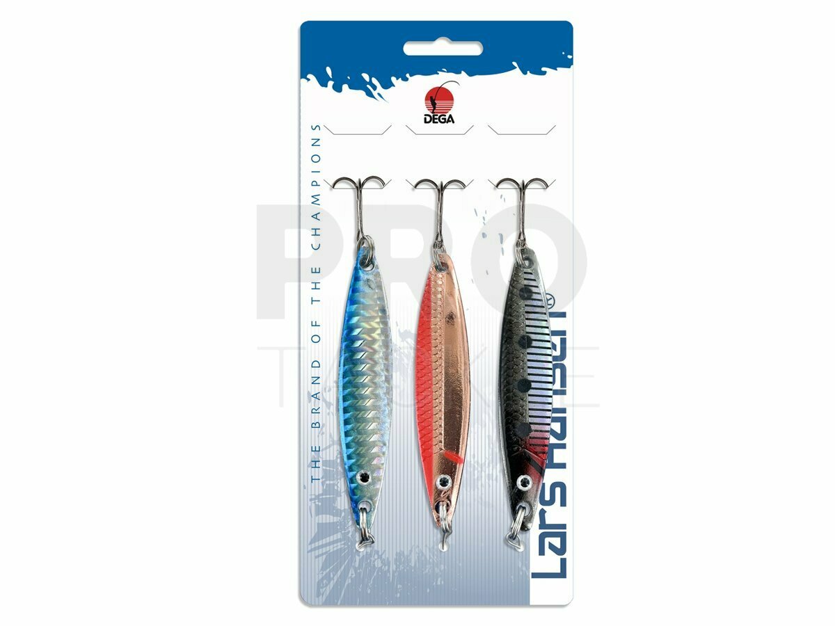 The Dega Seatrout Spoon Set is a high-quality collection of spoons designed specifically for sea trout fishing. Each set includes three finely crafted lures featuring an enticing swimming action and highly reflective surfaces that attract predatory fish even from long distances.