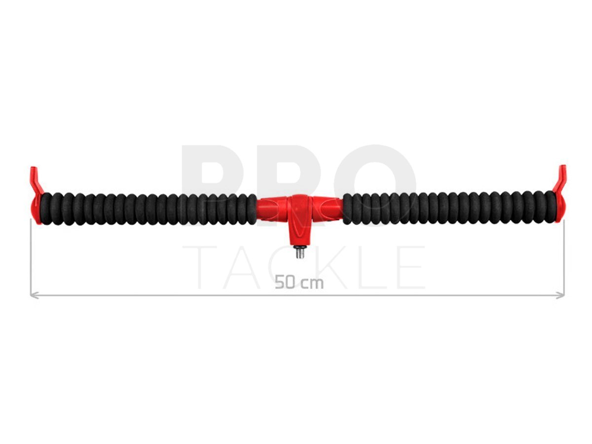 EVA VARIO is a sophisticated rod holder designed primarily for feeder technique. Its surface is made from black EVA foam, which perfectly holds the rod in place and prevents its damage. Due to the irregular, wavy shape of the foam, the line can pass freely when engaged in the groove. Ends of the holder are provided with plastic protrusions preventing the rod from falling during sharp shots. An interesting feature is the sophisticated tightening system, thanks to which it is possible to adjust the side plastic protrusions to any angle. You can adjust the holder whether you are catching with the tips of the rods up or just above the water surface. The whole system is then fixed by screwing it to the feeder stand, the strut or another support. Technical parameters: Total length: 50cm Diameter: 28mm