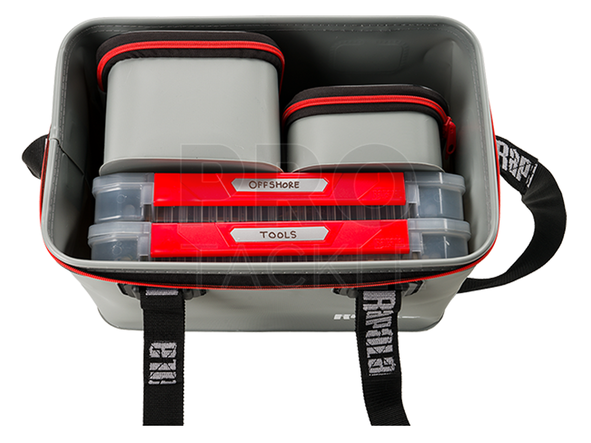 The Hydro Tackle Bag is built for the on-the-go angler. Featuring: 1mm body thickness, 1.5mm bottom thickness, 0.85mm lid thickness, collapsible design, detachable shoulder strap, rustproof reinforced zipper, holds five 3700 size tackle trays.
