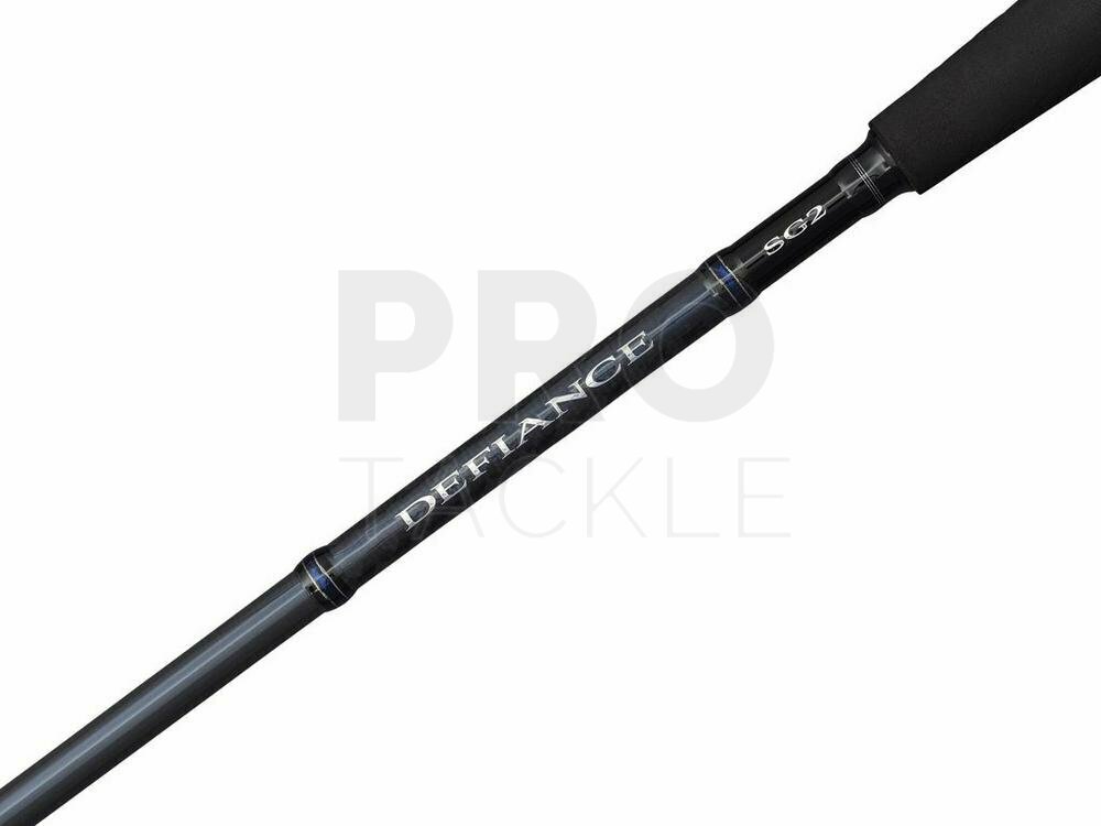 Versatility is the name of the game with the Defiance SG2 Medium Game series. These medium power rods offer a perfect balance of casting distance and accuracy, making them ideal for a whole host of different saltwater fishing locations including ports, rocks and beaches. They provide precision control of both hard lures and soft lures and, depending on the casting weight you choose, can be used to target many different species including sea bass, bluefish, bonitos and anything else in between. SeaGuide Gold Label reel seat SeaGuide Gunsmoke SW Guides CCS Guide Setting Super versatile action blanks 24/30T High Modulus carbon fiber Tough EVA handles Deluxe Rod bags