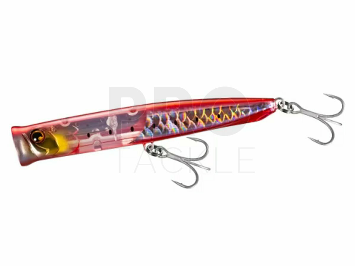 Measuring 130mm in length and featuring a streamlined profile, the Exsence Beam Popper is aerodynamically designed for long and accurate casts over 70m. Its weighted body and strategically positioned internal weights ensure stable and balanced swimming action, even in choppy conditions. The concave face produces enticing surface disturbance and loud popping sounds that mimic the frantic movements of injured prey. Featuring Flashboost and Scale Boost for maximum visual attraction and Jet Boost for maximum distance casting and in-flight stability, the Exsence Beam Popper 130F is a versatile and reliable lure that delivers outstanding performance.