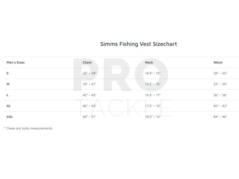 A comfortable fishing vest that holds tons of tackle and keeps you cool. All you ever really need is a hand on the rod and a foot in the river, but bringing along an arsenal of gear is a nice bonus. Simms’ Guide Vest is spacious, intuitive and comfortable for outings that last from dawn until dusk. The vest includes 26 pockets to fit all your tackle and more, and a third-hand rod holder that frees a hand when you need to release that wriggling two-footer. A ventilated, padded collar adds plush comfort that keeps you cool on long days snapping casts across the water. The vest is finished in a water-resistant coating. Improved 100% Cordura® ripstop nylon fabric with Teflon® water-resistant finish Corrosion-proof, reliable 100% YKK® zippers 2 patented & improved built‐in retractors keep tools handy 26 pockets: 2 stretch mesh zippered chest pockets 2 cargo chest pockets 4 waist pockets 4 large, zippered horizontal waist pockets 2 stretch-mesh dry shake/floatant pockets 4 interior pockets 2 interior large horizontal & 2 vertical...