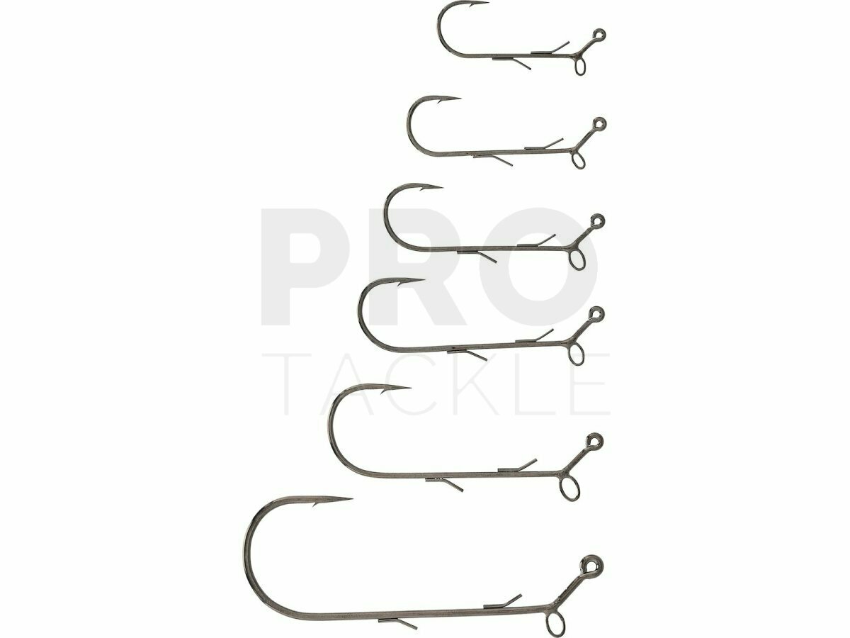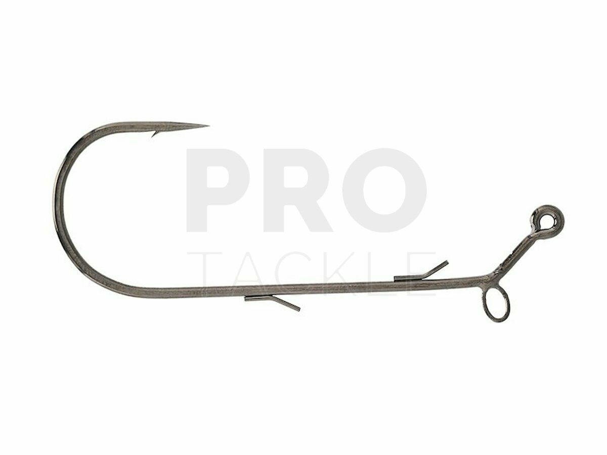 A new and innovative rig concept based on a very special hook, the Switch-Rig Hook. The 45 degree angled jig hook with an oval ring welded at the front enables Switch Weights to be added instantly. The perfect way to instantly react to changing conditions, enabling lures to be adapted to the prevailing current, wind, drift, and depth, without re-rigging. The free-moving weight gives a very natural bait presentation when fishing tight to the bottom. Use the Switch-Rig Hook with Ned Worms and Craws, or on a straight retrieve too. The extra bait holder on the shank keeps the body of soft lures straight and firmly fixed to the hook for many casts and fish. Unique switch eyelet Thin wired, ultra sharp hook Hook is black nickel coated Keeper system on shank, maximum grip less damage