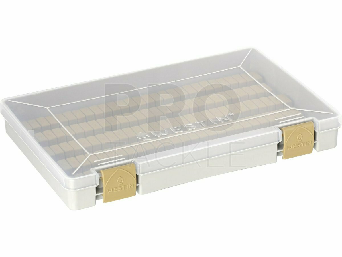 Keep your valuable jigheads and blade baits perfectly organised and protected with the W3 Jig Box. This storage solution is constructed from strong, durable grey polypropylene (PP) material designed to withstand regular use. The transparent clear lid allows for easy viewing of contents without opening and prominently features the Westin logo. Inside, a precisely cut, removable silicon insert boasts 135 individual slots, securely gripping each jig or blade to prevent movement, tangling, and damage during transport. Available in this single, highly practical size, it's an efficient way to manage your jig collection. Available in one size Strong PP material Lid with Westin logo Will hold 135 jigheads and blades Removable silicon insert