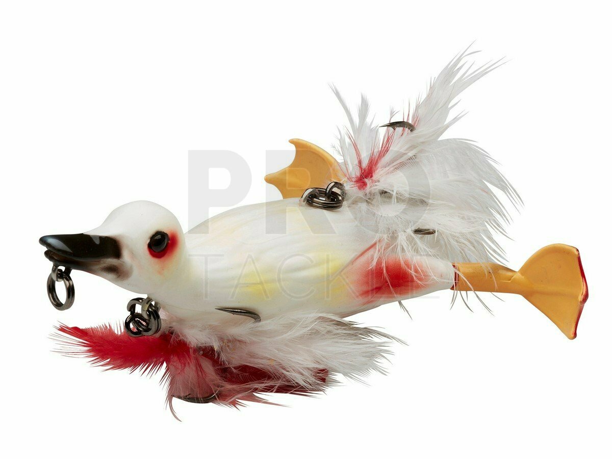 Attach the line to the chest and the lure will run higher, with a more panic fleeing action. The lure can be fished fast or slow, with steady retreive, long pulls, and mimics a duckling in the most realistic way!