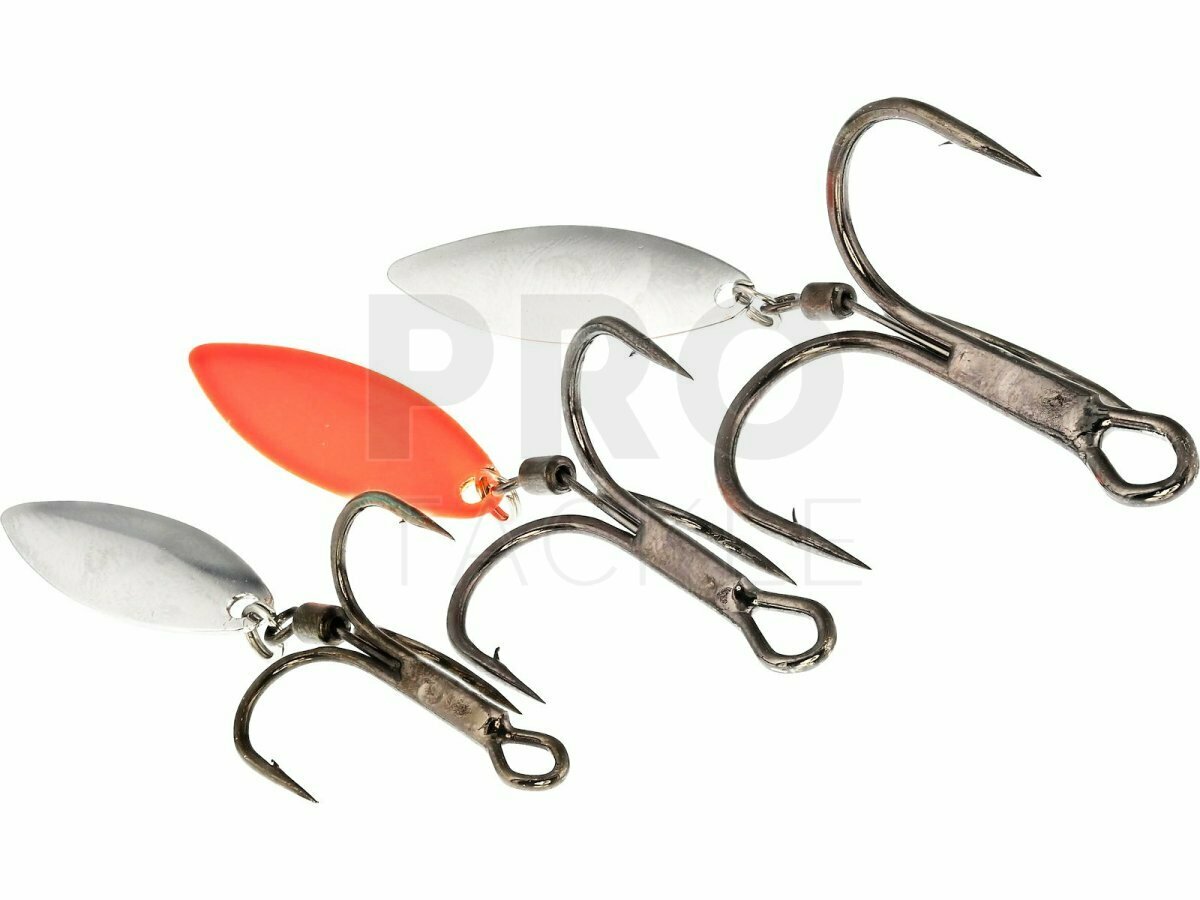 A clever add-on product, the Westin Spin-Trebles feature an easy rotating willow spinner-blade fixed in the center with a swivel on an axis. A super-cool add-on to pimp any hard or soft lure. Creates a unique extra trigger, ensuring fewer missed takes and better hook-ups. Welded swivel for easy rotation Thin wired, ultra sharp hook Hook is black nickel coated Willow blades for maximum flash